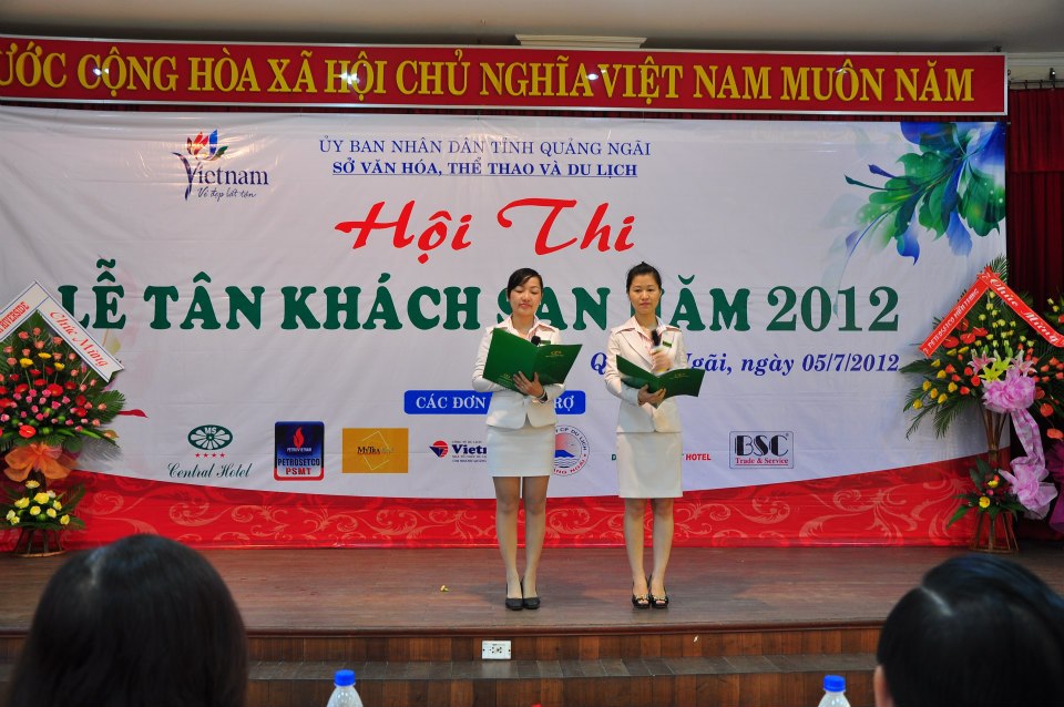 Tham dự Hội thi có 6 đội thi đến từ các doanh nghiệp: Công ty CP Du lịch Quảng Ngãi; khách sạn Mỹ Trà, khách sạn Bình Sơn, khách sạn Trung tâm, Khách sạn Petrosetco miền Trung và khách sạn Đức Long Gia Lai Dung Quất. Trải qua ba phần thi: Phong cách người lễ tân, Năng khiếu và Xử lý tình huống, Ban Tổ chức đã trao giải Nhất cho đội khách sạn Mỹ Trà, giải Nhì thuộc về đội khách sạn Trung tâm, giải Ba thuộc về đội Công ty CP Du lịch Quảng Ngãi và giải khuyến khích được trao cho Khách sạn Đức Long Gia Lai Dung Quất và Khách sạn Bình Sơn. Ngoài ra, Ban Tổ chức còn trao các giải phụ gồm giải nhất phong cách được trao cho đơn vị Khách sạn Đức Long Gia Lai Dung Quất, giải nhất năng khiếu được trao cho đơn vị Khách sạn Hùng Vương và giải nhất ứng xử thuộc về Khách sạn mỹ Trà.
