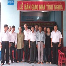 Đến dự lễ trao tặng nhà tình nghĩa có ông Huỳnh Duy Việt - PCT UBND huyện Bình Sơn, ông Nguyễn Văn Tâm - PCT UBND xã Bình Chánh và ông Nguyễn Tân Tiến – Giám đốc Công ty TNHH Đức Long Dung Quất cùng đông đảo cán bộ và nhân dân xã Bình Chánh. Ảnh : Lễ bàn giao nhà tình nghĩa Ông Nguyễn Công Xuân là thương binh trong cuộc kháng chiến chống Mỹ cứu nước.
