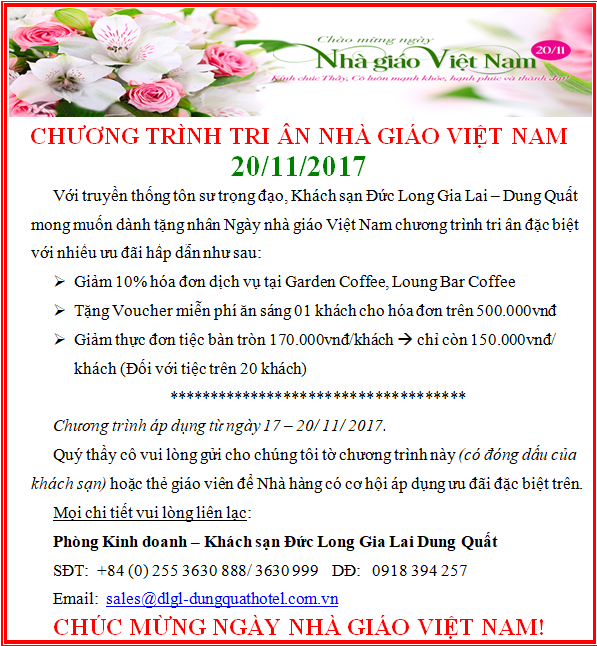 CHƯƠNG TRÌNH TRI ÂN NGÀY NHÀ GIÁO VIỆT NAM 20/11/2017